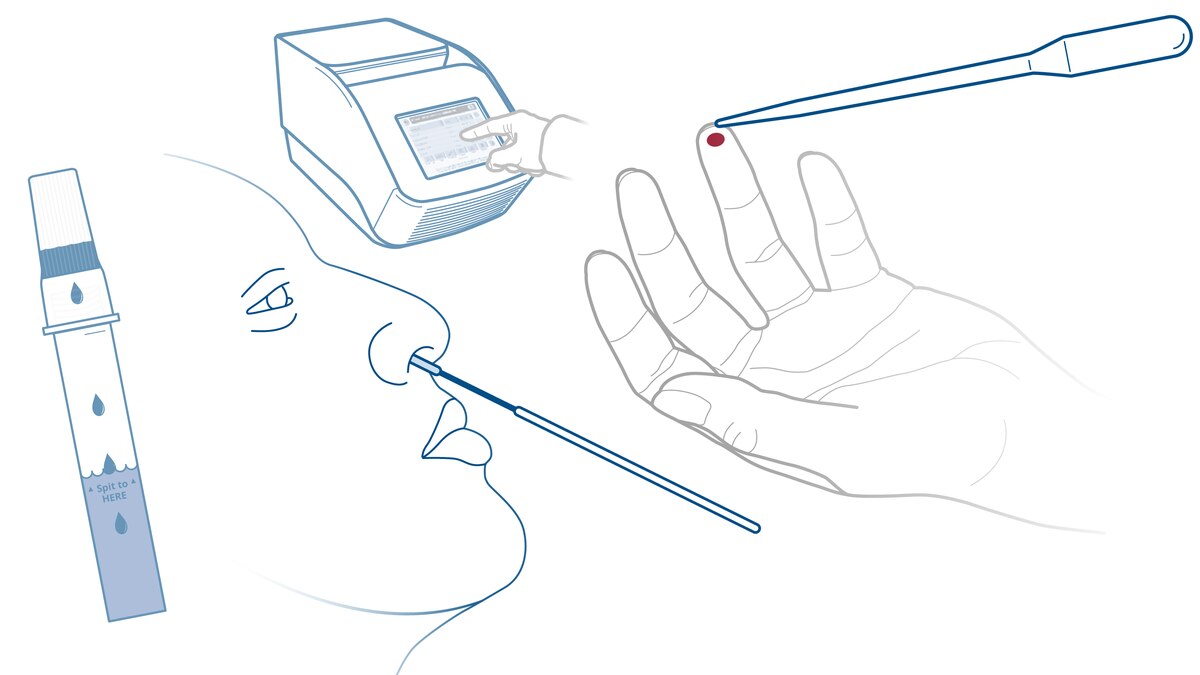 The rapid nasal swab test is an antigen test that detects specific proteins on the surface of the virus (those spikes extending from the surface of the virus in those ubiquitous media images). Like the PCR test, it determines whether a person is currently infected